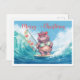 Hippo Surfer on Surf Board on Christmas Holiday Postcard