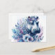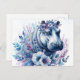 Esta postal de personalizable cuenta con una acuarela botánica de un hipopótamo con una estética femenina en tonos azul y violeta. Un retrato de animal salvaje floral.