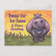 Desfile de animales Hippo Postcard es por su lado divertido presentando nuestro arte original de un lindo personaje de hipopótamo colocado en la hierba verde de la sabana con un cielo amarillo texturado, naranja y un borde violeta pintado por el talentoso artista infantil Traci Van Wagoner. En muchos de nuestros extravagantes productos animales de safari, verás el divertido caballo de agua gris y rosa que viene y va con esta divertida obra de arte de la capilla del capo y la cola del hipopótamo safari en la parte trasera. Únase al Desfile de Animales y compre hoy mismo todo un conjunto de accesorios de casa y oficina del personalizable Animal Parade Hippo. Perfecto para los amantes del hipopótamo de todas las edades.