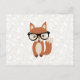 Adorable lindo bebé personalizado zorro animal gráfico con gafas hipster en su cara. Un zorro naranja marrón rojizo moderno y divertido sentado con una cola pusilánime, aprendiendo y leyendo con sus espectáculos.