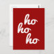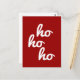 Ilustracion de diseño de texto Ho-ho-ho con letras blancas sobre fondo rojo para Navidades. Es posible cambiar el color de fondo y añadir uno diferente al diseño con su elección.