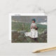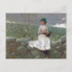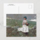 Postal de arte fino con el cuadro, Peach Blossoms (1878), de Winslow Homer (1836-1910), artista estadounidense del movimiento realismo. Un joven chica sentado en una pared de piedra cerca de un árbol frutal florido con flores rosas.