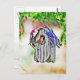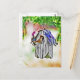 Esta tarjeta posteada presenta una colorida foto de una casa colgada delante de su casa de pájaros.