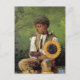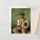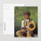Postal de arte fino con la pintura, Llevando girasol al profesor (1875), de Winslow Homer (1836-1910), artista estadounidense del movimiento realismo. Un joven estudiante afroamericano sentado sosteniendo un gran girasol.