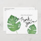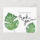 Envía tus agradecimientos con esta inspiración de hoja de palma tropical botánica que fue dibujada a mano con pinceles de medios mixtos para dar una textura extra. La caligrafía de agradecimiento también fue escrita a mano para un bonito toque.