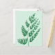 Una simple hoja de planta verde sobre un fondo verde claro, en un diseño minimalista moderno.