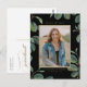 Invite a su familia y amigos a su fiesta de graduación con esta tarjeta postal de invitación a graduación botánica de esta clase de personalizable de 2023. Cuenta con hojas de acuarela sobre fondo negro. Personalice esta tarjeta postal de graduación de boho agregando una foto, nombre, escuela y otros detalles. Esta tarjeta postal de invitación a la graduación fotográfica está disponible en otras cajas.