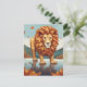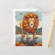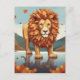 Hojas de Otoño León Macho, este diseño creativo presenta un león macho hecho enteramente de hojas de otoño parado en un lago con un hermoso reflejo.