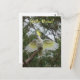 Saluda o recibe a alguien con los brazos abiertos.. ehh alas con esta hermosa y personalizada postal con una imagen de primer plano de una magnífica cacatúa con crema de azufre que extiende sus alas sobre un árbol. Personaliza la tarjeta con tu propio texto para hacerlo aún más especial! El estridente grito de la Cockatoo con crema de azufre se puede escuchar en muchas partes del este y norte de Australia. Una bandada de cientos de aves nevadas blancas con escudos amarillo pálido puede ser una vista espectacular cuando se ven a lo lejos, pero acercarse a sus llamadas puede ser ensordecedor. Al ser una especie gregaria, estas cocinas suelen pasar mucho tiempo en manadas, juntándose en el suelo (a menudo con unas cuantas plantadas en árboles cercanos que mantienen un ojo por cualquier señal de peligro) o cociéndose en árboles. El Cockatoo con crema de azufre es un gran loro blanco. Tiene un billete gris oscuro-negro, un escudo sulfuroso-amarillo distintivo y un lavado amarillo en el fondo de las alas. Los sexos son similares, aunque la hembra puede separarse a corta distancia por su ojo de color marrón rojo (marrón oscuro en el macho). Se trata de una cacatúa ruidosa y llamativa, tanto en reposo como en vuelo. Esta increíble foto fue tomada en una reserva natural cerca de Adelaida en el sur de Australia.