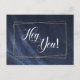 Envía un mensaje para decirles que piensas en ellos con una de nuestras postales personalizados. Adornado con un divertido y clásico diseño de denim y oro con letras guionadas a mano la frase ¡Hey You! en el frente. Personalizar la parte posterior con tu dirección. Ver nuestra selección completa de tarjetas de felicitación en nuestra tienda Zazzle!