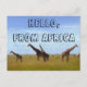 Las jirafas más altas del bello continente africano en las tierras más grandes de la sabana africana con hermosos cielos azules y maravillosas nubes en el horizonte y texto fresco Hola con amor desde África Hakuna Matata Postcard Es hora, en el tuyo hacer una lista, una ocasión especial para agregar un maravilloso texto maravilloso, inspirador asombroso, cita, diseño, hermoso y asombroso Zazzle inspirado diseño personalizado diseñador de personalizados en línea elegancia de tu colección de regalos de postales experiencia.