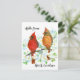 Una postal de "Hola desde Carolina del Norte" decorada con aves cardinales macho y hembra en un árbol de madera de dogwood floreciente ilustrado con tinta y acuarela. Inspirado por el ave estatal y flor estatal de Carolina del Norte. Puede editar o eliminar el texto para que se ajuste a sus necesidades.