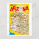 Esta postal es una reproducción de una postal vintage que muestra un mapa de Arizona.