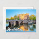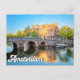 Esta pintoresca postal muestra una fotografía de la hermosa e icónica ciudad de Amsterdam, Holanda. Esta postal única sería ideal para los mejores amigos y familiares.