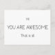 Postal Hola Eres Increíble, Todo Es Color De Personalizab