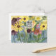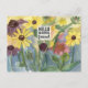 Hola hermosa tarjeta de saludo de amigo con un animado jardín de flores de verano brillantes con flores de confluencia, gaillardia y Susans de ojos negros pintados a mano con acuarela. ¡Envíe deseos de bendiciones a un amigo especial!