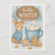 Postal Hola Invierno.Rínter acogedor, Cacao caliente, Gin