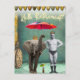 Una divertida y extravagante viñeta de arte alterado que presenta a un viejo hombre fuerte con corona, un elefante que sostiene un paraguas y "Hola Jubilación" en texto de neón. Tal vez sea justo lo que han estado soñando...