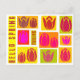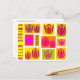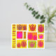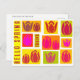 Esta tarjeta postal es la forma perfecta de decir "hola" a la primavera. Tiene un bonito diseño de tulipanes rosados y rojos, con un estilo estampado en un vibrante entorno amarillo, naranja y verde.