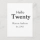 Postal Hola veinte cumpleaños agregar nombre est. Agregar
