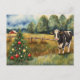 Season's Greeting country western style with a cute cow and Christmas tree and a red barn postcard. Cute and fun for the holidays!