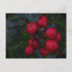Esta postal presenta un diseño simple pero llamativo de bayas y hojas huecas. El fruto de escarlata profundo se distingue sobre el patrón de hojas de fondo de verde, azul, oro y negro. ¡Envíe esto a alguien especial durante las vacaciones o en cualquier época del año!