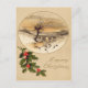 Es hora de celebrar las fiestas. Esta vintage impresión navideña representa una escena invernal con un puente y un santo.