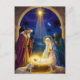 Celebrate the true meaning of Christmas with this beautifully illustrated Nativity flat holiday card. Featuring Baby Jesus surrounded by Mary, Joseph, and the Wise Men under the shining Star of Bethlehem, this card captures the wonder and peace of Christ’s birth. The vibrant colors, glowing halos, and serene night sky create a heartfelt religious message to share with family, friends, and church communities.