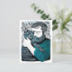 Postal Hombre con barba de Linocut sostiene un gato