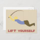 Postal Hombre gracioso se sostiene con un palo de pesca