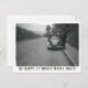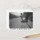 Un hombre de pie junto a un automóvil vintage con una corona de flores rodada en monocromo en una postal.