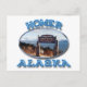 Homer, Alaska La Capital Mundial de la Pesca del Halibut. Este diseño presenta una imagen del letrero de Homer que tomé en 1994.