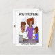 Una tarjeta con un personalizado gracioso sobre papá haciendo los deberes de su hijo. Obra de arte original de Personalizados de DB.