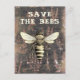 Gran ilustracion de una abeja sobre fondo de escritura manuscrita antigua invertida con un gran mensaje "Salven las abejas" y algunas hierbas en tonos sepia monocromáticos perfectos para abejas y amantes de la naturaleza, apicultor. El Día Mundial de la Abeja se celebra el 20 de mayo de cada año para llamar la atención sobre el papel esencial que desempeñan las abejas y otros polinizadores para mantener sanos a las personas y al planeta.