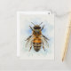 A finely detailed illustration of a honeybee with soft golden fuzz, bold black stripes, and transparent veined wings, painted in a realistic watercolor style. The gentle blue and teal wash in the background adds a fresh, airy feeling, keeping the focus on the bee’s intricate body and delicate legs. This graceful art print is perfect for bringing a touch of nature, warmth, and eco-conscious charm into kitchens, studios, nurseries, or any modern interior.