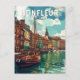 Honfleur diseño de viaje vector retro. Honfleur es una ciudad del departamento de Calvados, en la región normanda de Francia. Está en el estuario donde el río Sena se encuentra con el Canal de la Mancha.