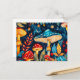 Postal Hongos Agaros Volados Bajo Luz Luna Completa