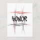 Una virtud o valor importante para un artista marcial es el honor. Este diseño único presenta un fondo abstracto de arte fractal negro, rojo y gris con un tipo de letra de estilo asiático. Un conjunto de postales de honor de artes marciales en caja hace un regalo único para un examen de promoción de cumpleaños, vacaciones o rango de cinturón.