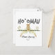La acuarela polinesia muestra cabeza tiki, helechos y texto. "Ho' Omau" - Nunca te rindas.