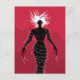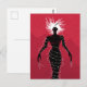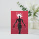 Postal chica Demon con un ilustracion vector que representa a un extraño personaje femenino negro - fantasma escalofriante con cabello blanco, ojos malignos rojos y manos deformadas con largas uñas sobre fondo rojo. Este monstruo extraño lleva un vestido parecido a un alambre de púas con picos de vidrio.