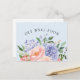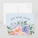 Envía vibraciones de sanación con nuestra tarjeta postal Hortensia floral azul de acuarela para desear recuperación. Rebosante de la belleza de la hortensia, peonía y rosa en pasteles suaves, es el abrazo floral perfecto para desear recuperación.