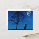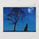 Dibujo de una silueta de lobo negro que aullaba en la luna con un árbol en el fondo.