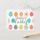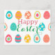 Texto moderno en rosa y verde con patrón de huevo de Pascua.