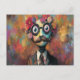 Envíe una sonrisa con esta vibrante postal con un caprichoso personaje humanoide adornado con una corona floral. Perfecto para los amantes del arte y para aquellos que aprecian un toque surrealista, esta postal de alta calidad captura el encanto y la imaginación de esta obra de arte única. Úsalo para enviar un mensaje sincero, o encuéntralo como una pequeña pieza de arte para iluminar tu espacio.