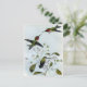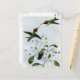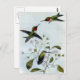 Dos colibríes machos se enfrentan unos a otros sobre una hembra encaramada debajo de ellos sobre un arbusto espinoso en este ilustracion vintage de un libro de aves de 1922.