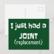 Postal Humor de reemplazo de articulaciones Novedad diver