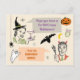 ¡Estas postales supergeniales de estilo vintage son perfectas para tus saludos retro de Halloween! Tienen un esquema de color naranja / negro / gris / verde / púrpura. El texto dice: "¡Espero que tengas un FaBOOlous Halloween!" La dama de los años 50 está vestida de bruja y sostiene un vaso de marisco. El hombre está vestido de demonio. También hay estrellas retro y un búho, un murciélago, un fantasma, una araña y una calabaza. Te transportarán en el tiempo con estas postales modernas de Halloween de mediados de siglo. Utilice las plantillas fáciles para personalizar este diseño humorístico. "más Personalizar" si necesita ajustar el tamaño del texto.