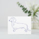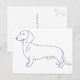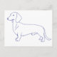 Klassisches Design in Blau-Weiß. Blaue Linienzeichnung der Hunderasse Dackel auf weißem Untergrund.