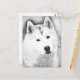 Postal Husky Siberiano Blanco con boceto Bella Artes Ojos