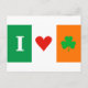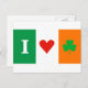 Esta muestra la bandera tricolor irlandesa con un corazón rojo en el panel blanco central de la bandera, un shamrock verde en el panel naranja de la bandera a la derecha, y la letra I en blanco contra el fondo del panel verde de la bandera a la izquierda. Leyendo de izquierda a derecha los símbolos expresan " Amo / corazón Shamrock " .